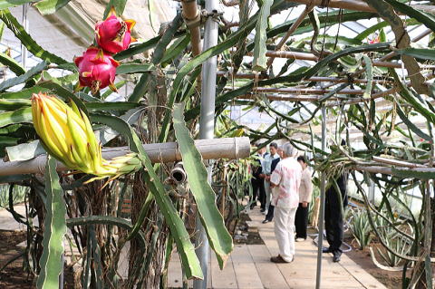 | 今年もドラゴンフルーツの花が咲き始めました。 夜に咲くこの花は見る者の心を動かします。 |