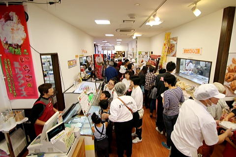 | 本日行なわれた八食センターとのコラボ企画。イチゴを使ったスィーツ作りです。 美味しそうなイチゴづくしを楽しんだお客様には雪室リンゴのサービスもありました。 |