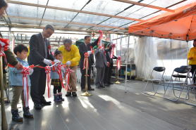 御来賓の方々によりテープカットが 行われ、地元保育園の子供たちに イチゴの収穫体験をしていただきました。 当イチゴ園では、「とちおとめ」 「紅ほっぺ」「章姫(あきひめ)」 「かおり野」の4品種を植えています。 |